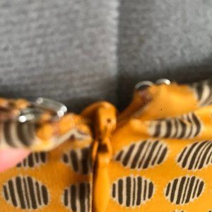 Urban Outfitters Lily wrap dress. Sz small. Deep V crossover neckline with adjustable spaghetti straps. High leg slit and side rouching. Back zip closure. Great layering piece too. Golden yellow with small striped circle print. Satin fabric with a medium weight and nice drape. In good, gently used condition.