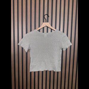 Urban Outfitters T Shirt Small Womens Metallic Sparkle Sheer Ruffled Trim Lurex
