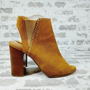 Urban Outfitters Tan Suede Peep Toe Chelsea Block Heel Ankle Booties V542