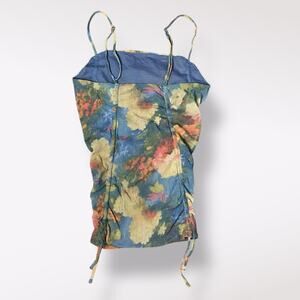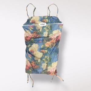 Urban Outfitters Tasmin Mesh Rouched Cropped Cami Size XS Blue Floral