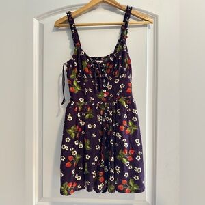 Urban Outfitters Tate Burgundy Strawberry Floral Romper size XS.