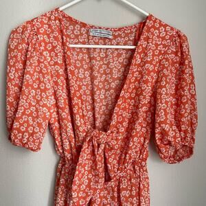 Urban Outfitters Taylor Floral Orange Tie Front Romper (XS)