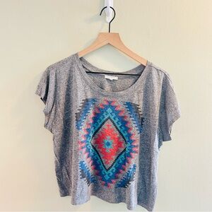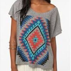 Urban Outfitters Techno Navajo Quilt Oversized Crop Tee Womens Size Small Grey