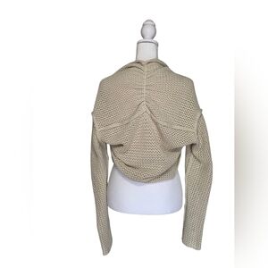 Chunky knit cardigan complete with a shrug silhouette, dropped shoulders, long sleeves and open front. Ruched design to reverse centre.