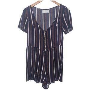 Urban Outfitters The Hanger Navy Striped Scoop Neck Romper Size XS