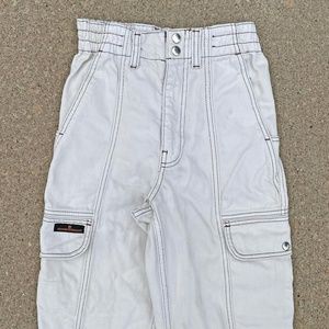 • Cargo/utility off-white jean from BDG with a high rise, baggy fit and straight leg silhouette