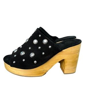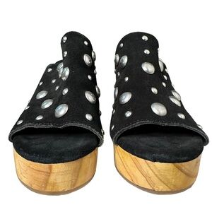 Urban Outfitters | UO Black Suede Studded Wooden Heel Mule Size 8