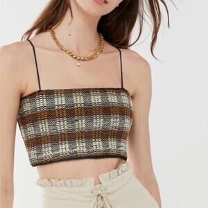 Urban Outfitters UO Dreamweaver Brown Cream Plaid Stretch Cropped Cami Top