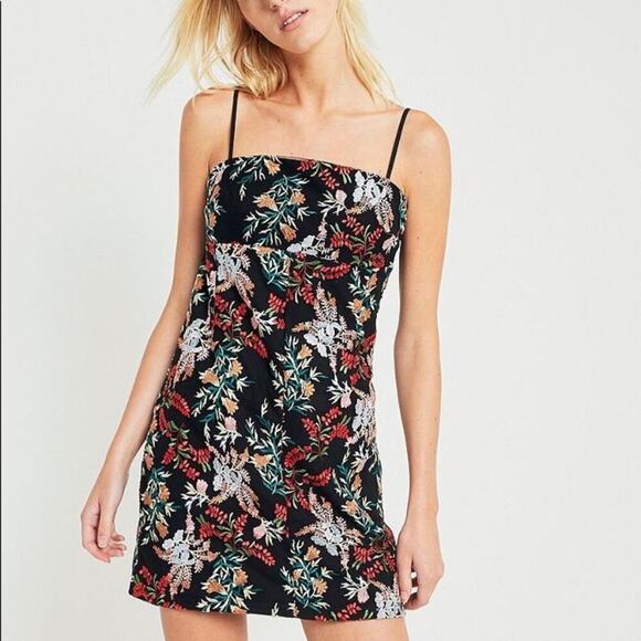 Urban Outfitters UO Embroidered Ponte Straight Neck Mini Dress XS