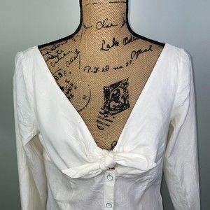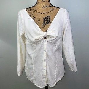 Urban Outfitters UO Madix White Tie Front Blouse Linen Long Sleeve Womens Medium