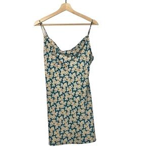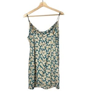 Urban Outfitters UO Mallory Cowl Neck Slip Mini Dress Blue Floral L