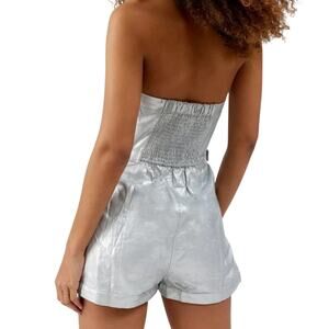 Urban Outfitters UO NWT Yara Metallic Silver Strapless Romper 100% Cotton