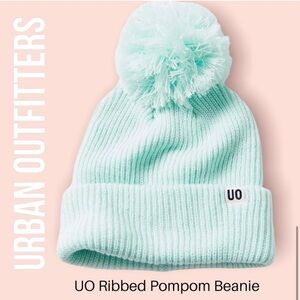 Urban Outfitters UO Ribbed Pompom Green Mint Beanie NWT 🍁❄️