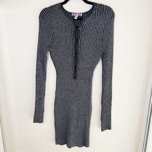 Urban Outfitters UO Ribbed Sweater Dress Black Knit Minidress Metallic Bodycon L