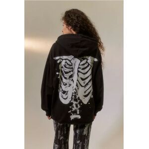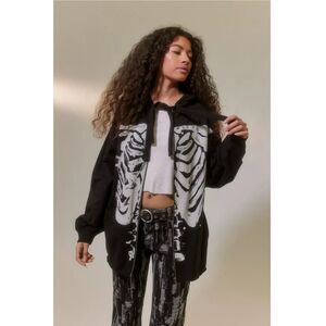 Urban Outfitters UO Skeleton Zip-Up Sweatshirt Jacket Top Oversized S NWT 282737