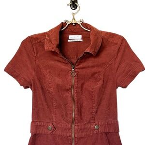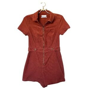 Urban Outfitters UO Tyson Zi-Front Short Sleeve Romper in Corduroy Size M