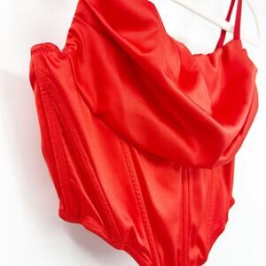 Urban Outfitters UO Womens Y2K Romantic Lexi Satin Cowl Neck Corset Crop Top in Red. Size Small.
