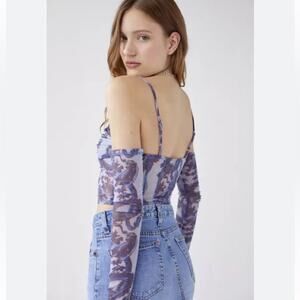 Urban Outfitters UO Ziggy Purple Paisley Print Cold Shoulder Corset Top Size L
