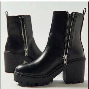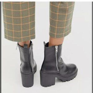 Urban Outfitters UO Zip Up Chunky Boots Black Vegan Leather Platform New Size 8