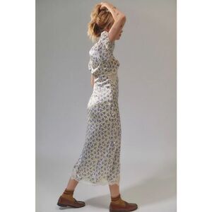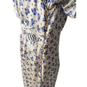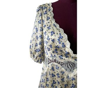 Urban Outfitters UO Lauren Lace-Trim Floral Midi Dress size L Cream Blue Ditsy B