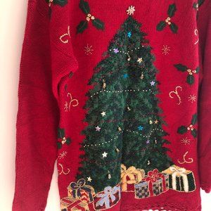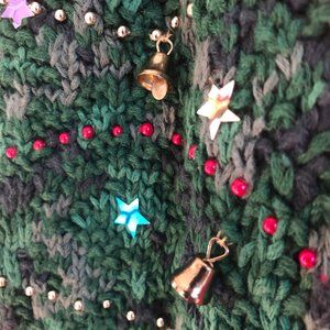 Vintage Christmas sweater. The Christmas tree has little bells attached that jingle.