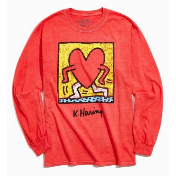 Urban Outfitters Unisex Keith Haring Red Running Heart Long Sleeve T Shirt M NEW