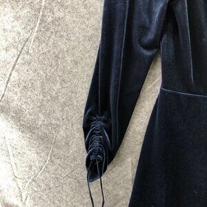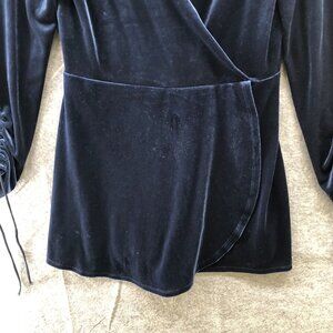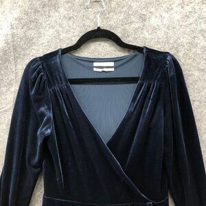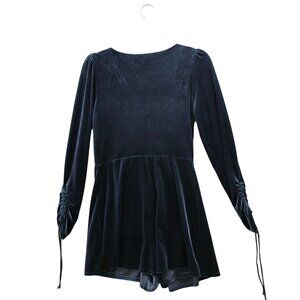 Urban Outfitters Velvet Faux Wrap Romper Mini Dress M Blue V-Neck Long Sleeve