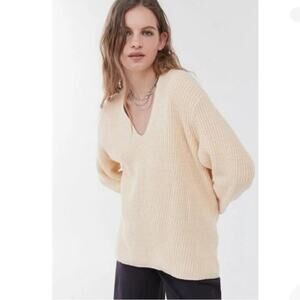 Urban Outfitters Victoria Cream Oversized Knit Long Sleeve V Neck Sweater Size M