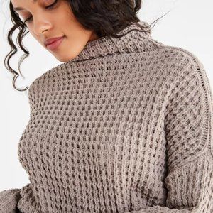 Urban Outfitters Waffle Knit Turtleneck Sweater (Size S) Taupe