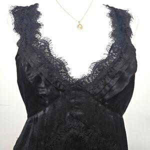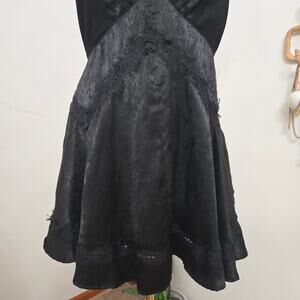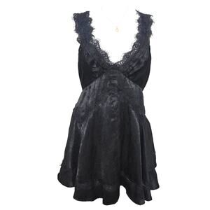 Urban Outfitters Whimsigoth Coquette Black Satin & Lace Babydoll Mini Dress M