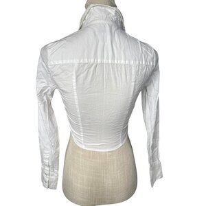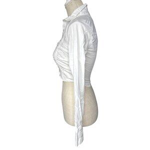 Urban Outfitters White Ruched Long Sleeve Button-Up Crop Shirt XS