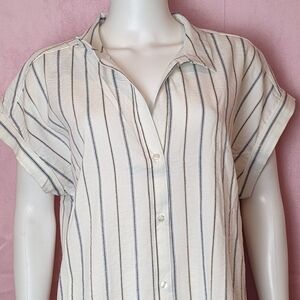 Urban Outfitters White and Blue Striped Button Up Mini Shirt Dress size Large