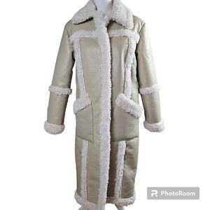 Urban Outfitters Willa Sherpa Fleece Sherling Vegan Leather Longline Coat in XS NWT