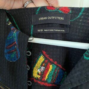 Urban Outfitters Willow Frock Midi Dress Black Multicolor Embroidered Floral-XS
