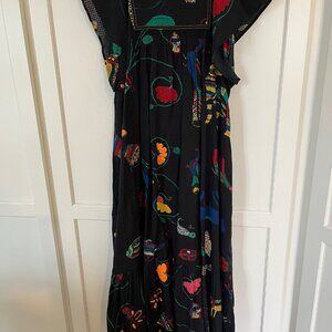EUC Urban Outfitters Willow Frock Midi Dress Black Multicolor Embroidered Floral