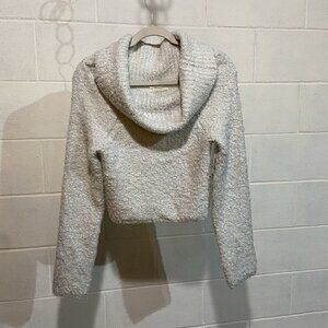 Urban Outfitters Women Chunky Knit Sweater L Grey Long Sleeve Cowl Neck Cropped