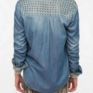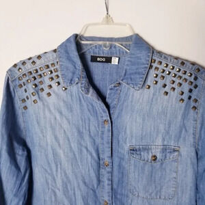 Urban Outfitters Women Medium BDG Blue Denim Studded Button Down Shirt
