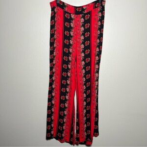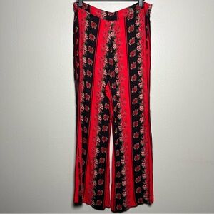 Urban Outfitters Women Pants 8 Red Flare Wide Leg Boho Groovy Floral Stripe