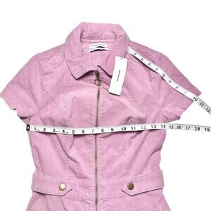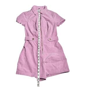 New with tag women’s Urban Outfitters Tyson lilac zip front corduroy short romper. Features two back pockets, front zipper closure, and snap button waist detail.