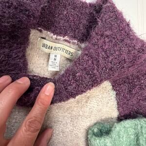 Urban Outfitters Womens Avril Cropped Sweater Green Purple Raglan Chunky Small