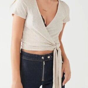 Urban Outfitters Womens Beige Side Tie Tshirt Crop Top Size Large