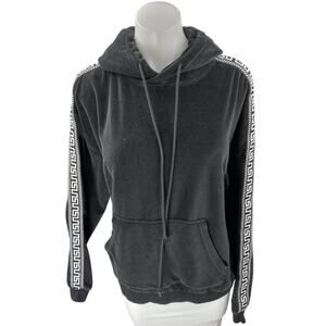 Urban Outfitters Women's Black Velvet Velour Hoodie Hooded Sweatshirt Top Size S