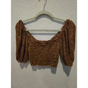 Urban Outfitters Women's Brown Animal Print Cropped Blouse Size M