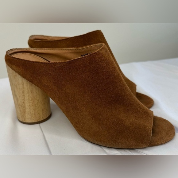 Urban Outfitters Women’s Brown Suede Open Toe Wooden Heel Mules Shoes Size 8