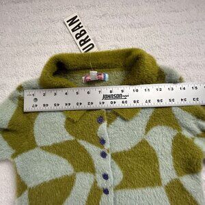 Urban Outfitters Womens Green Wavy Check Cropped Sweater Cardigan Small New $129