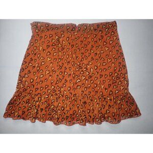 Urban Outfitters Women's Heart Print Ruffle Wrap Skirt M Orange