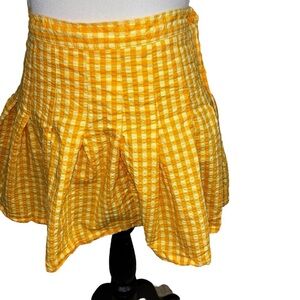 Urban Outfitters Women's Mini Circle Skirt in Size Medium. Bright Yellow Plaid Fabric, pleated in the Waist. 100% Cotton, Seersucker Fabric. Zipper and Button Closure on the side. Good Condition.