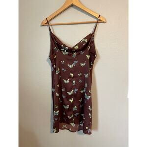 Urban Outfitters Womens Mallory Slip Dress Medium Butterfly Print Satin Bodycon