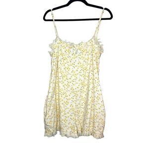 Urban Outfitters Women’s Medium Ditsy Floral Fringe Romper White Yellow