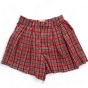 Stylish plaid red women's shorts perfect for casual outings. Comfortable and trendy design.